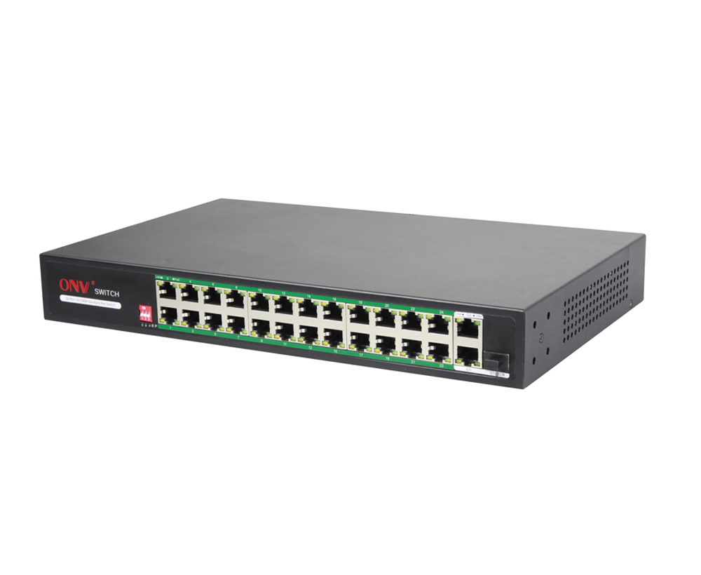 سوئیچ ONV-H1024PLD یک سوئیچ PoE هوشمند (AI PoE) بدون مدیریت است که بهصورت مستقل توسط شرکت ONV طراحی و توسعه یافته است. این دستگاه دارای 24 پورت PoE 10/100 مگابیت، 2 پورت uplink RJ45 گیگابیتی 10/100/1000 مگابیت و 1 پورت فیبر نوری SFP گیگابیتی (Combo) میباشد.